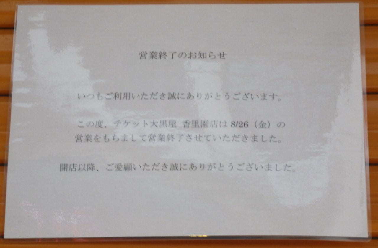 香里園店は全国200店舗以上(大阪府内7店舗)のうちの1つとして営業を続けてきましたが、8月26日の営業をもって閉店したようです。