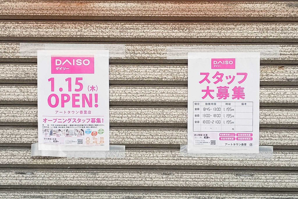アートタウン香里に「ダイソー アートタウン香里店」ができるようです。