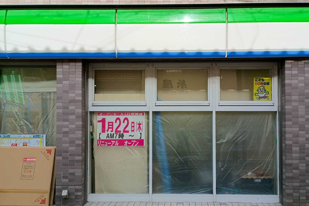 貼紙によると、1月22日にリニューアルオープンで、オープンセールが3日間開催されるんだとか。ここのファミマをよく利用する人は覚えておくとよさそうです。