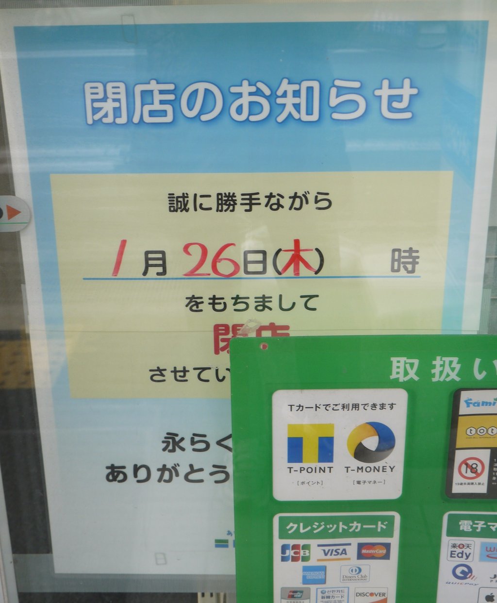 藤本病院近くのファミリーマート八坂町店が1/26(木)に閉店へ。アドバンスロードで約3年間営業していたコンビニ