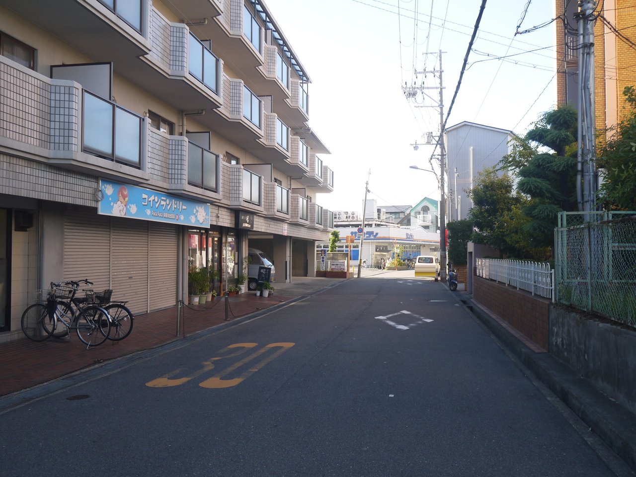 振り返ると、こんな感じ。奥にスーパーのサンディが見えています。