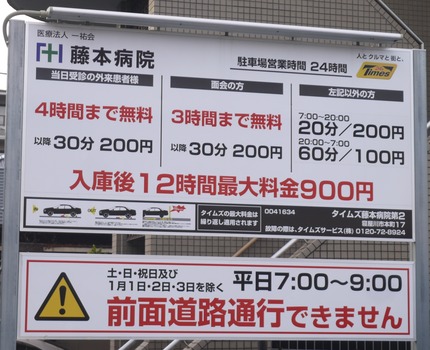 アルカスホール横のタイムズと「ニコニコパチンコ170」(高宮栄町)に設置された臨時駐車スペース(パチンコ店~藤本病院の送迎車あり)を利用すれば良いとのこと。(詳しく知りたい方は藤本病院の公式ホームページをご覧ください。)