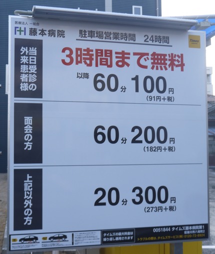 藤本病院(八坂町)の正面にある駐車場が3月4日(水)からコインパーキングのタイムズとして運用されています。