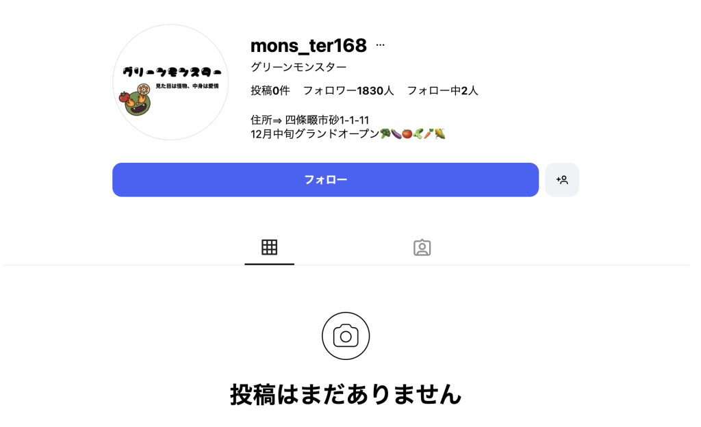 グリーンモンスターのInstagramのアカウントによると、12月中旬にグランドオープンなんだとか。フルーツモンスターのInstagramのストーリーズで、グリーンモンスターが隣にできるとの記載がありました。