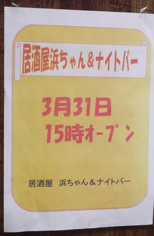 香里新町に「居酒屋 浜ちゃん&ナイトバー」が開店しています。