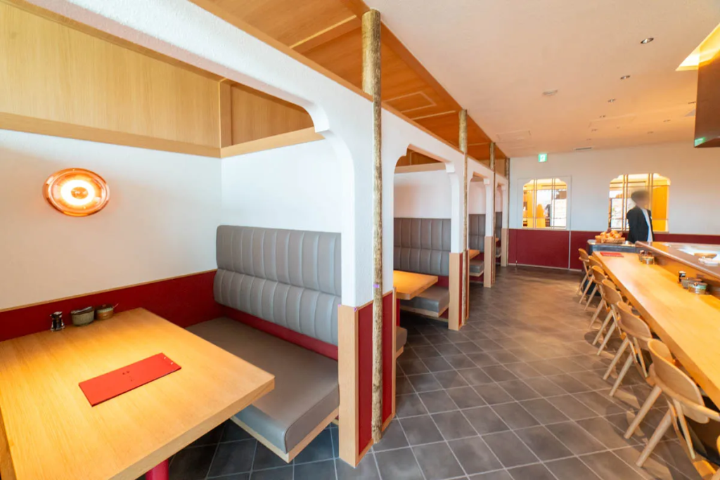 たくさんのカウンター席に、テーブル席。大きな窓がある窓際の席も。
