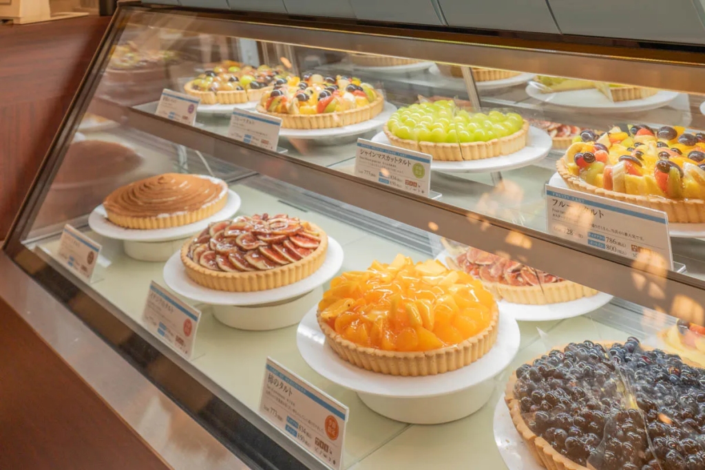 綺麗に並ぶキラキラのケーキたち。旬のフルーツが乗った季節限定のタルトも。めっちゃ美味しそう。四條畷のイオンにもありますしデリスのタルト好き!って方も多いのでは。