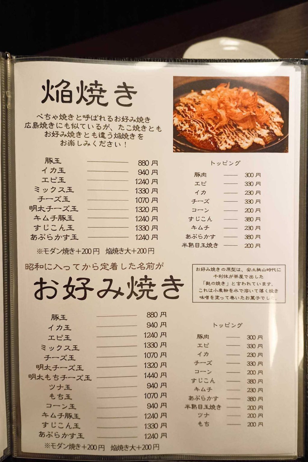 焔焼きが気になります。一品もたくさんで、種類豊富〜!