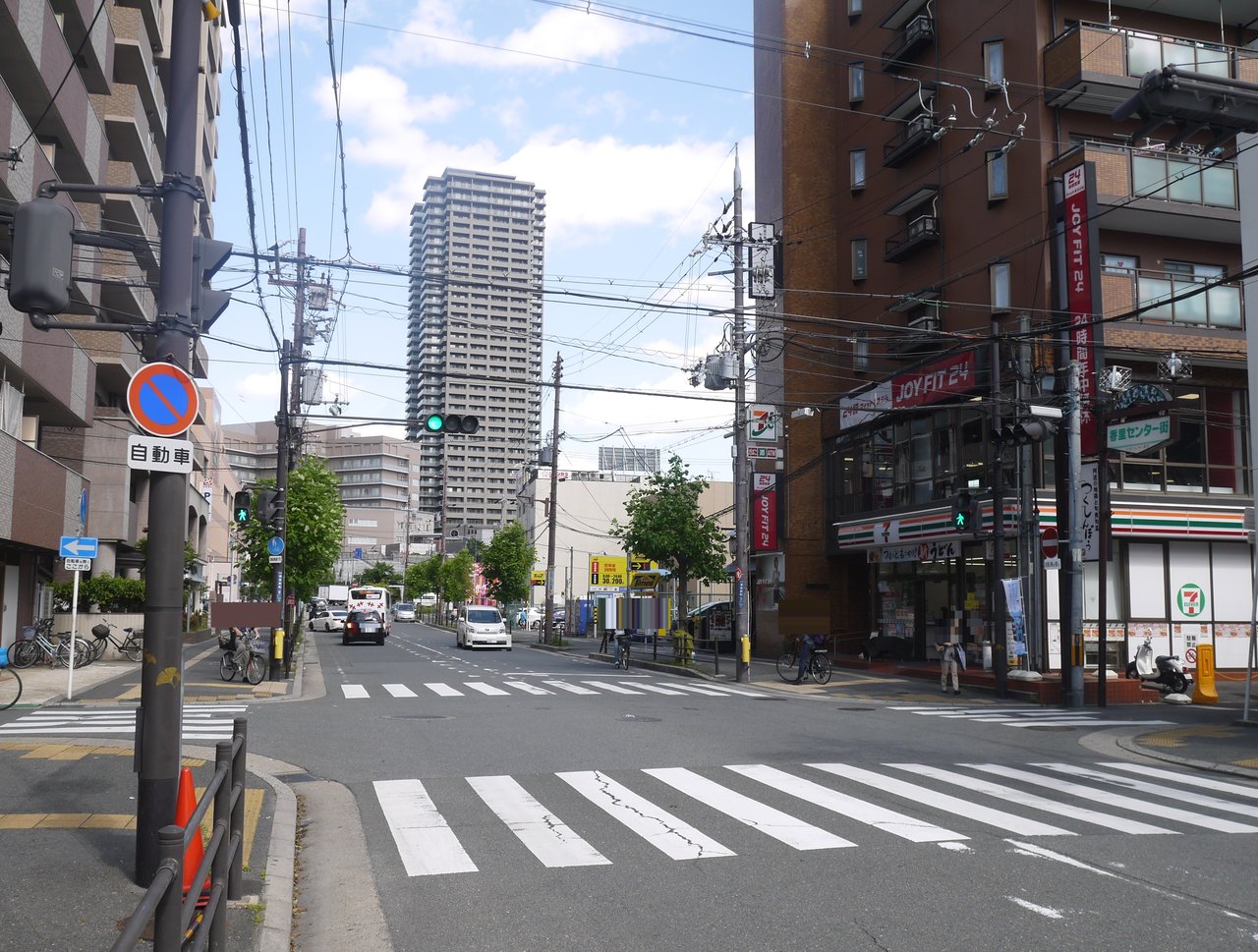 ジョイフィットができた場所は、香里園駅西口ロータリーへ向かう道路と香里センター街(香里新町商店街)の交差点の北西角に建つマンションの2階部分です。