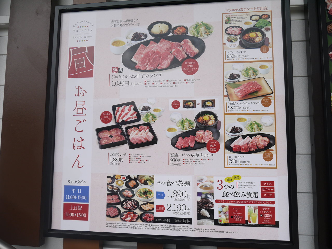また食べ放題プランに加えて、石焼ビビンバ&焼肉ランチ(930円)やお重ランチ(1280円)といったランチメニューも充実しているそうですよ。