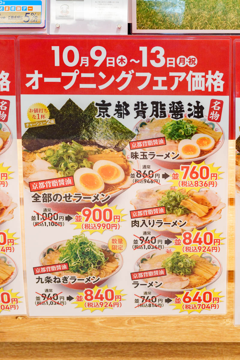 イオンモール四條畷に作っていた「京都北白川ラーメン魁力屋 イオンモール四條畷店」がオープンしています。