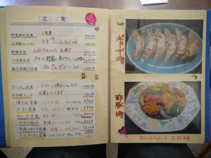 メニューは飯類(焼き飯、中華丼、天津飯など)と麺類(ラーメン、チャンポン、焼きそば、皿うどんなど)、一品料理(餃子、春巻き、天ぷら、マーボー豆腐など)を中心に、それらが組み合わさった定食物(800~1000円台)などを味わうことができました。