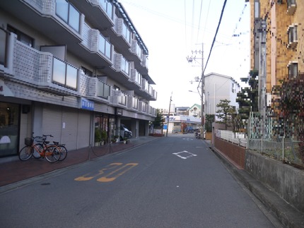 振り返ると、こんな感じ。奥にスーパーのサンディが見えています。