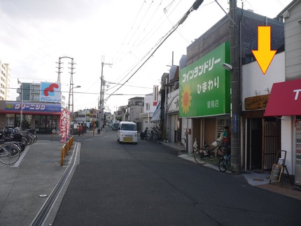 場所は京阪萱島駅から東側に700mほど離れた住宅街で、万代萱島店(写真右)の西向かいです。