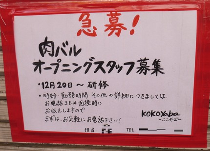 香里南之町(寝屋川市北部)に「kokoyaba」(ここやば)という肉バルのお店が開店することが分かりました。