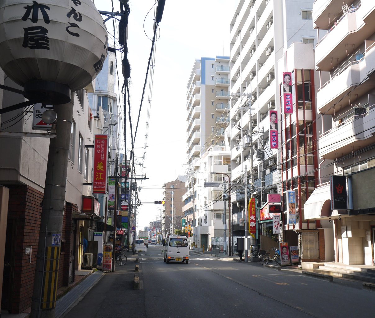 周囲はマンションや雑居ビルなどが立ち並ぶ立地ですが、更に1棟高層マンションが増えました。(2016年末までこの場所はコインパーキングとして利用されていました。)