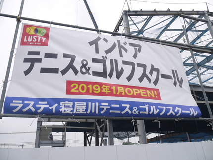 建設工事が進む「ラスティ」は、雨に濡れない屋内でテニスやゴルフを練習できるのがウリのスポーツ施設です。