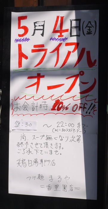 香里新町に「鶏白湯専門店 つけ麺まるや 香里園店」が開店するみたいです。