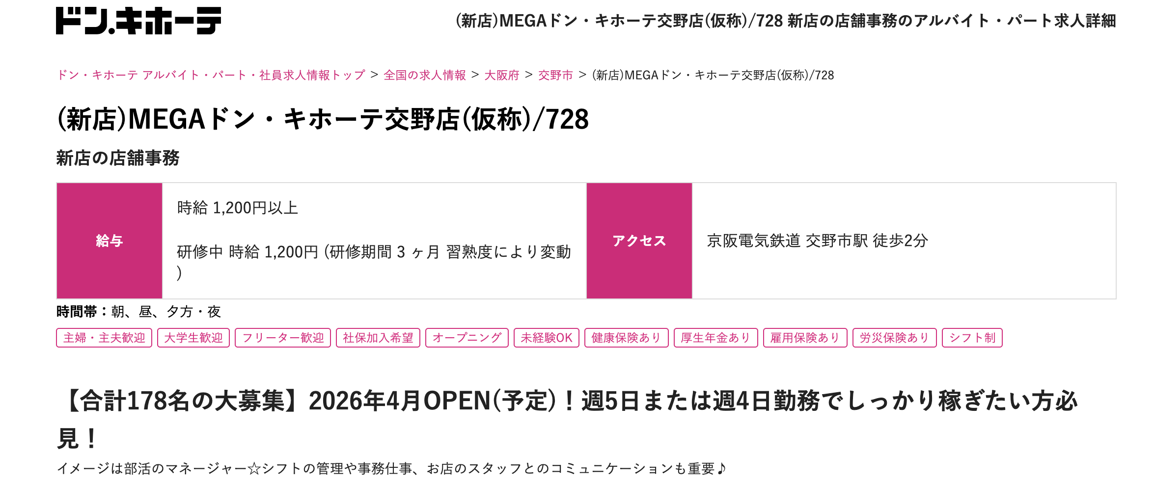 「MEGAドン・キホーテ」は近隣の市だと茨木市にもあります。今回この場所に「MEGAドン・キホーテ」ができるとなると、北河内初のオープンとなりそう!