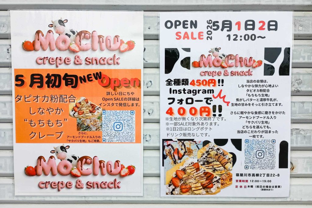 高柳に「Mo Chu」というクレープ店ができるようです。