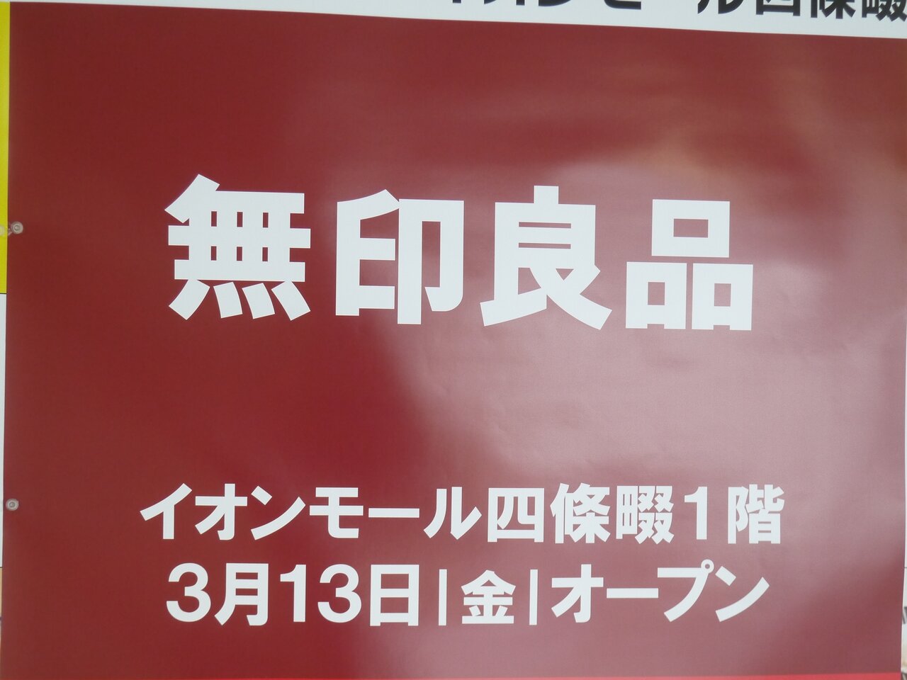 大型商業施設・イオンモール四條畷の1階に「無印良品」が3月13日(金)、開店しました。