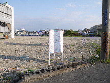 現在は五ヱ門の立体駐車場だった部分を残して更地が広がっていますが、最近になってから以下のような看板が設置されました。