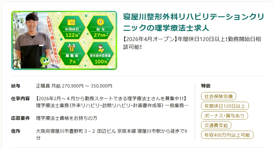 市役所ちかくに「寝屋川整形外科リハビリテーションクリニック」ができるみたい。4月オープン