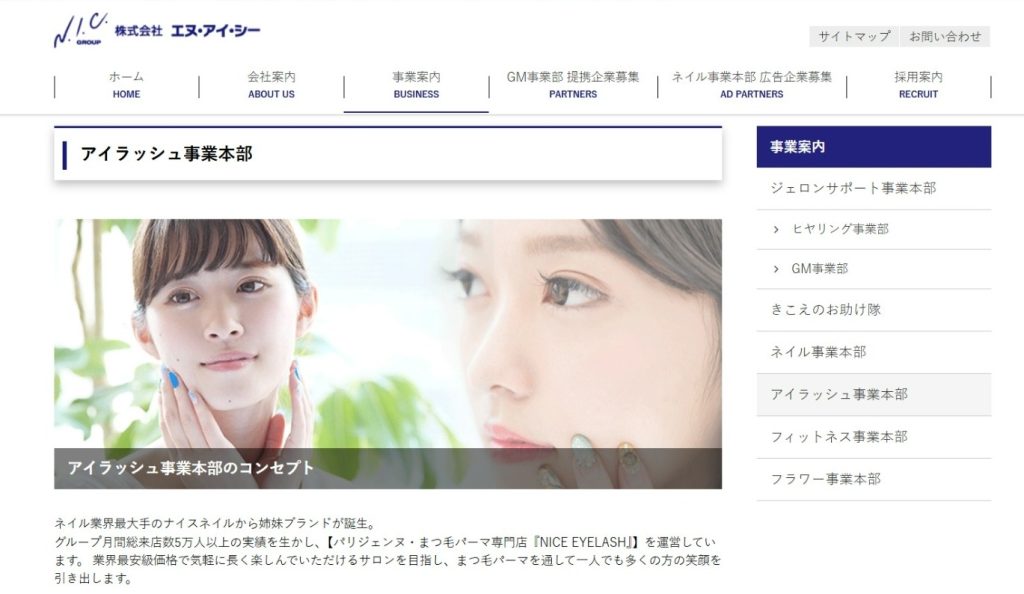 運営会社の株式会社エヌ・アイ・シーのホームページによると、ネイル業界最大手のナイスネイルから誕生した姉妹ブランドのようです。