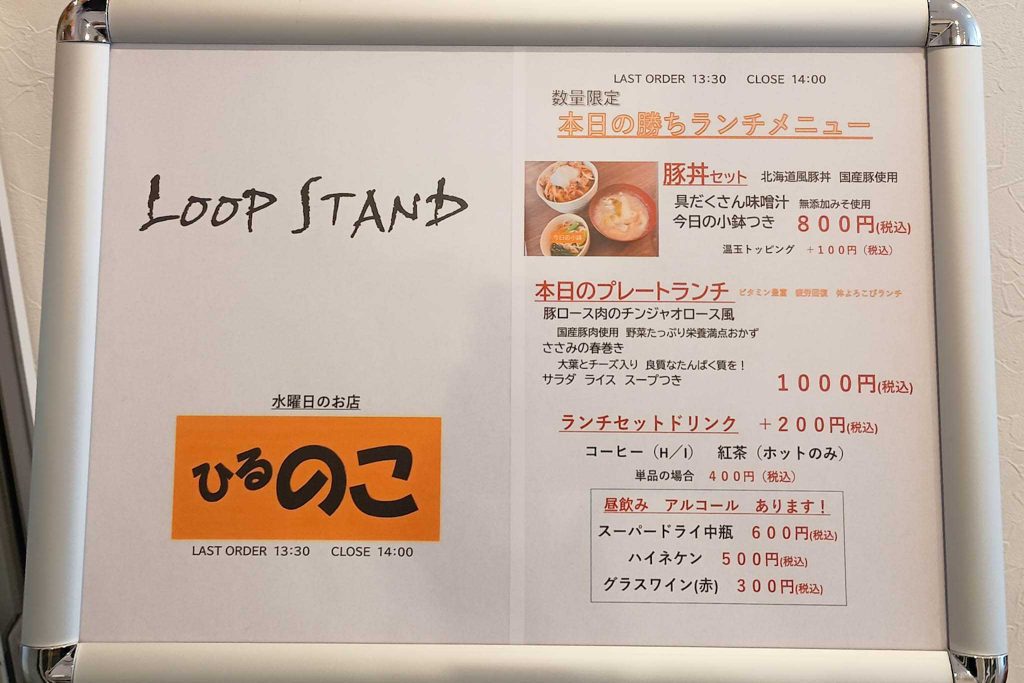 「LOOP STAND」は曜日ごとでお店が変わるシェアカフェ。水曜日限定で『のこ』がオープンするということは、以前記事にしています。