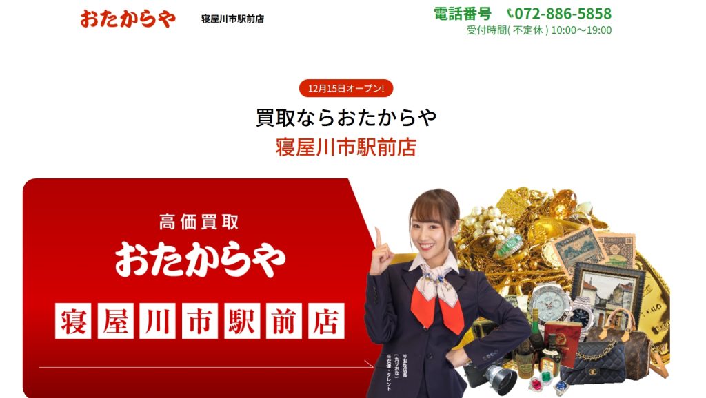 上記によると、12月15日にオープンとのこと。おたからや(→公式サイト)は全国に1600店舗以上展開している買取専門店。高柳栄町や香里南之町にも店舗があります。