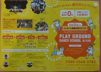 大型商業施設「ビバモール寝屋川」にダンス教室の「PLAY GROUND DANCE SCHOOL」(プレイグラウンド・ダンススクール)が開講するみたいです。