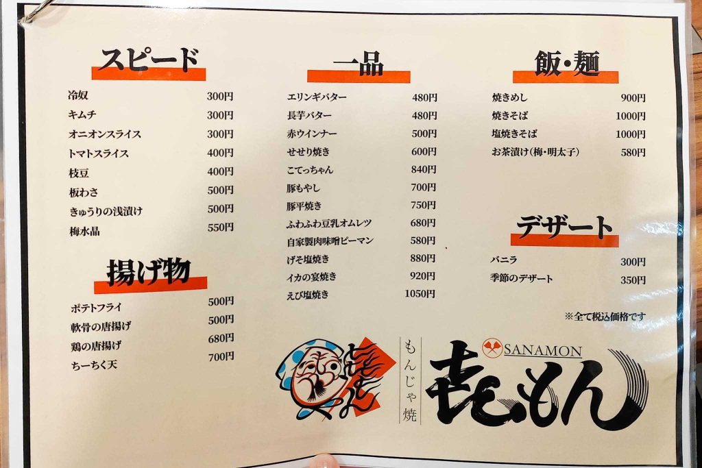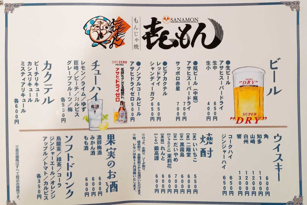 もんじゃ以外の料理やお酒のメニューも豊富でした。