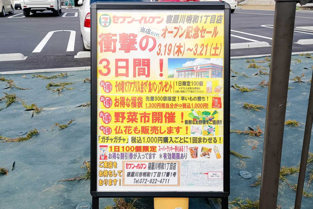 交差点『明和』あたりに作っていた「セブンイレブン 寝屋川明和1丁目店」がオープンしています。