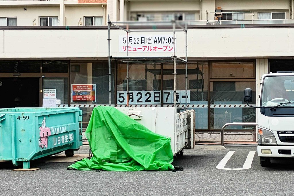 見に行ってみると、工事をしていました。情報提供によると、4月16日から休業していたようです。