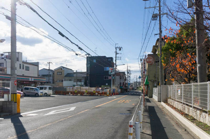 反対側を向くとこんな感じ。この先は大阪厚生信用金庫や、西小学校があります。