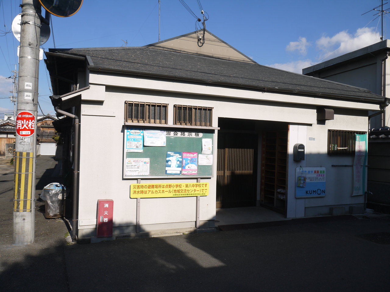 新しい名前は「点野自治会館」。前の道路や敷地は以前よりも広く、