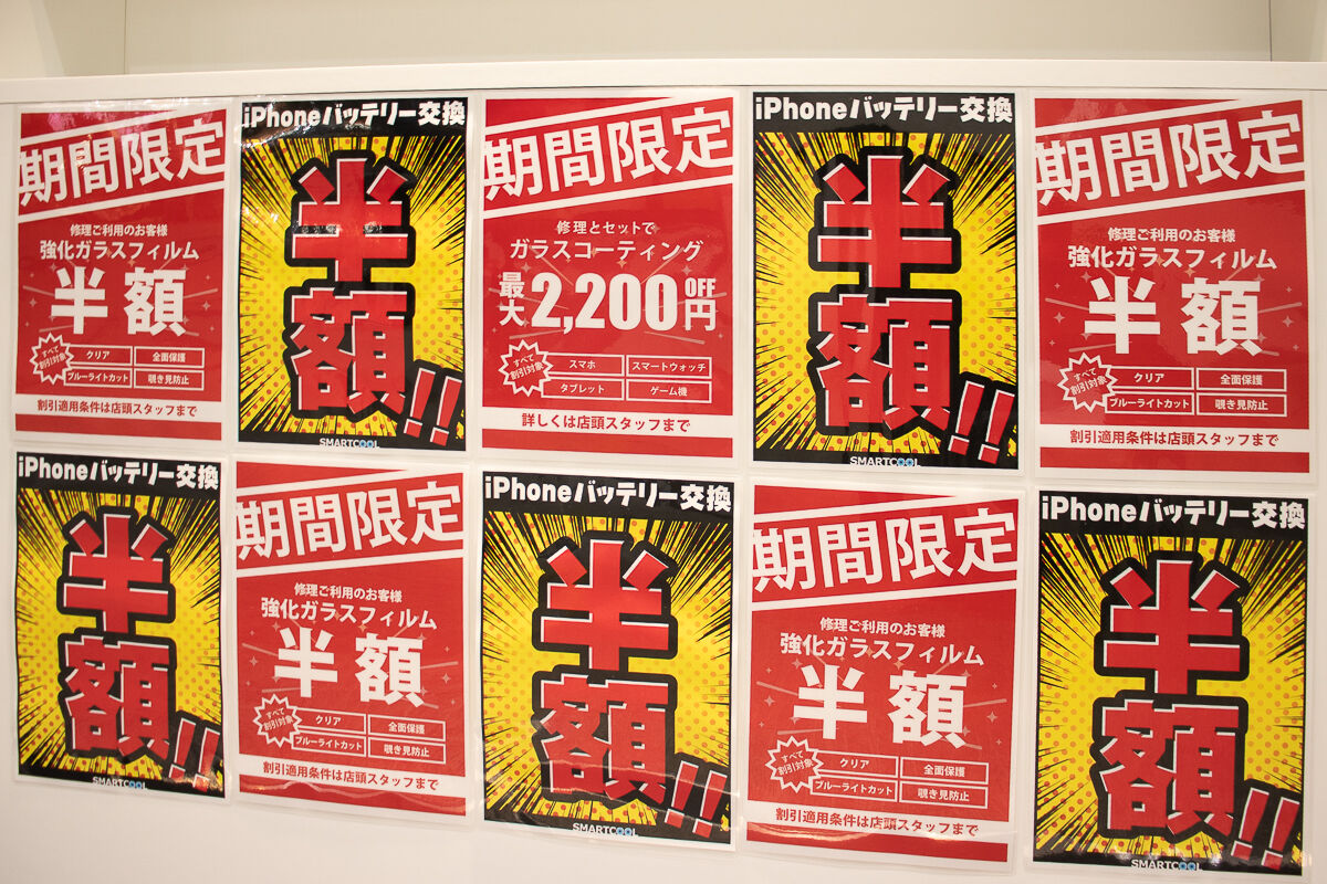 スマートクール(→公式サイト)は全国に約120店舗ある、iPhone・スマホ修理のお店。画面割れ、バッテリー交換なども対応しているようです。