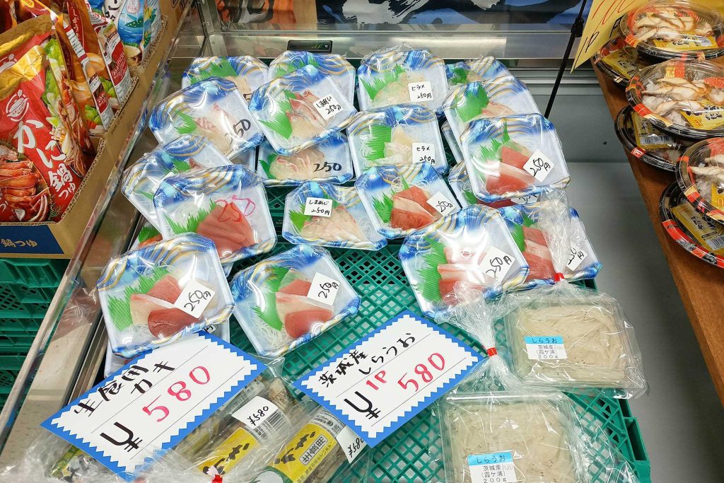 新鮮な魚介類がもりもり~!お寿司やお刺身などもありまして、どれもリーズナブルで美味しそうでした。