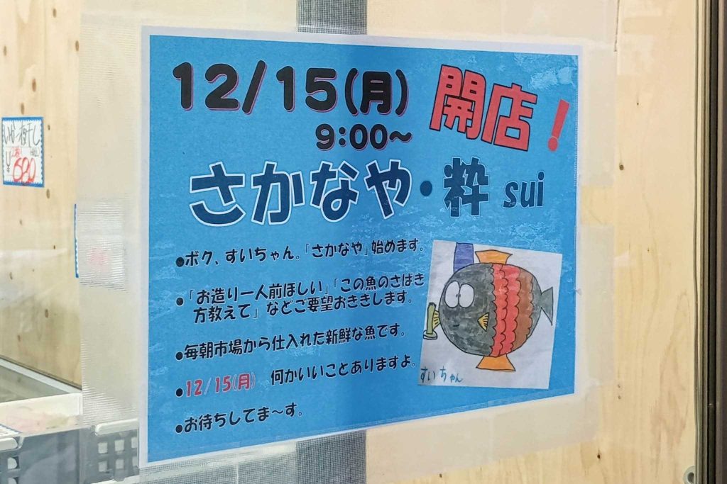 寝屋川市立第十中学校近く成田南町に「さかなや 粋」という鮮魚店ができています。
