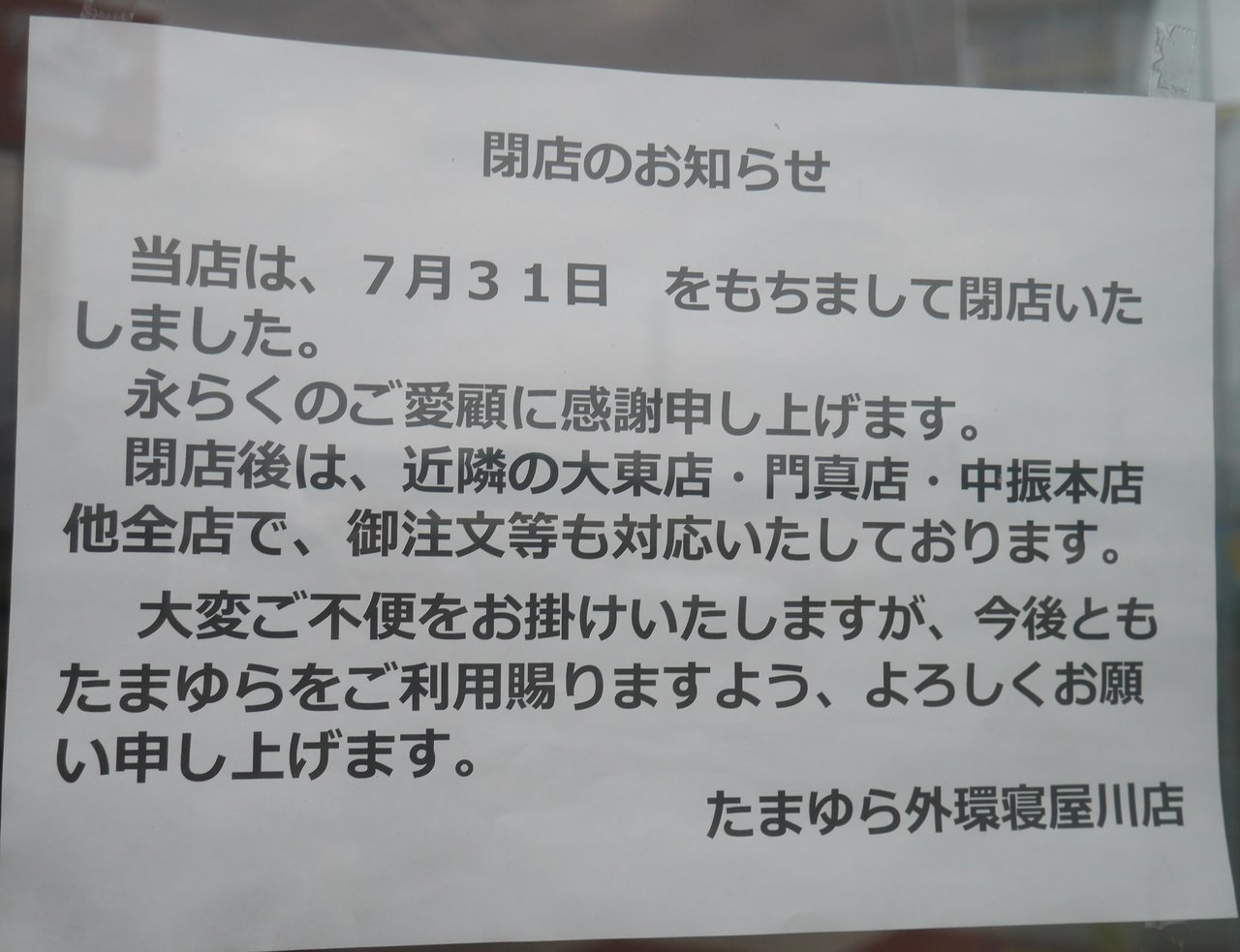それによると、7月31日の営業をもって閉店した模様です。