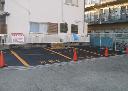 5階建てのビルの解体工事が行われていた(下の写真)ところで、跡地が駐車場として利用されることになったようです。
