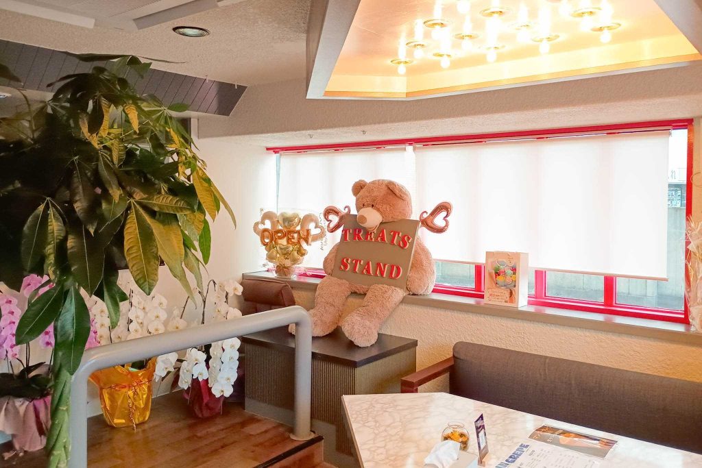 看板を持っているくまちゃん。Instagramによると、9月27日にオープンとのこと。
