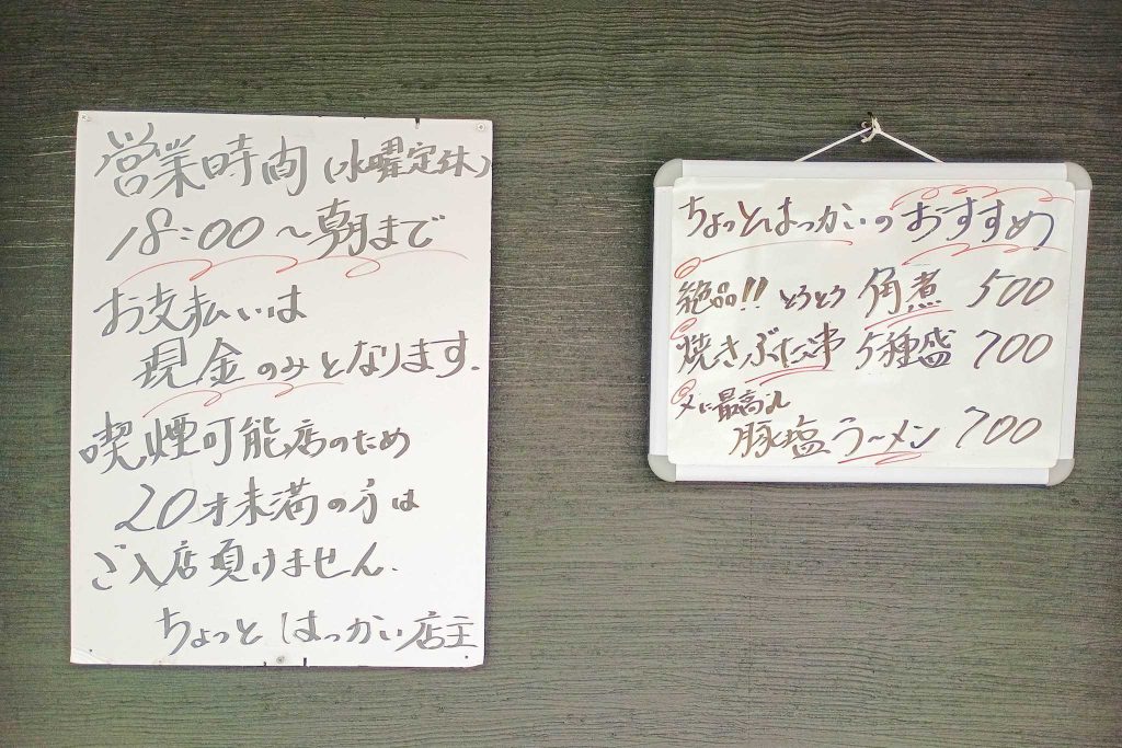 営業時間は18時から朝まで。水曜日が定休日とのこと。お酒が進みそうな、角煮・焼きぶた串食べてみたい!豚塩ラーメンもとても気になります。