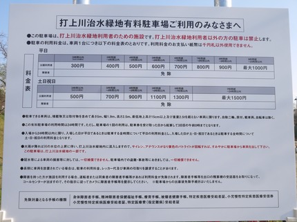 打上川治水緑地に公園利用者専用の有料駐車場が4月1日(水)、オープンしました。