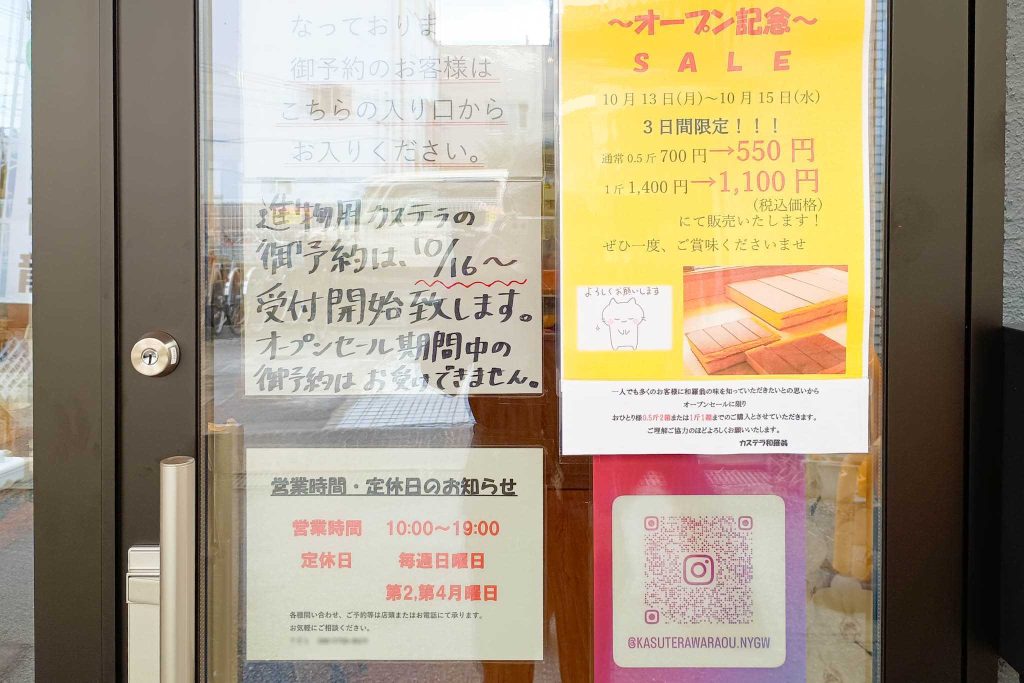 ベル大利近くに作っていたカステラのお店「和羅翁 寝屋川本店」がオープンしています。
