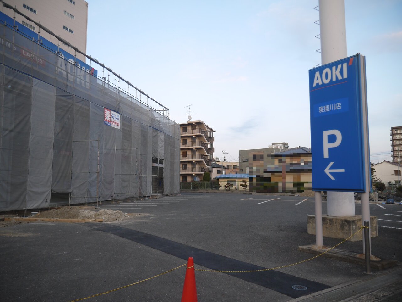 2019年7月まで紳士服店のAOKI寝屋川店があった建物を改装する工事が始まり、以下のような横断幕が掲げられています。