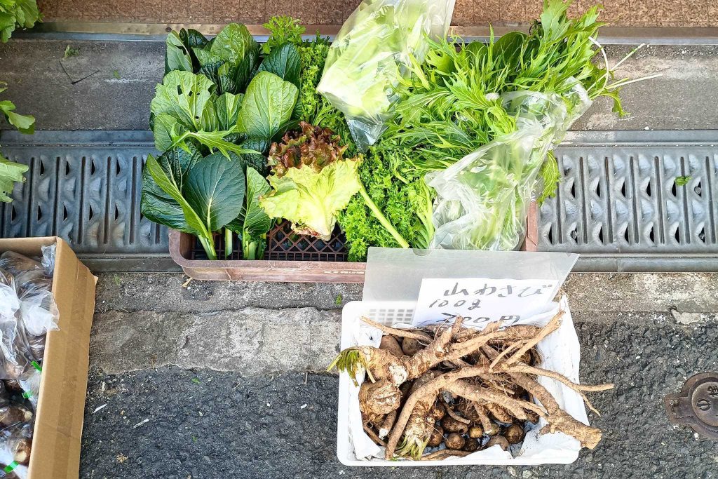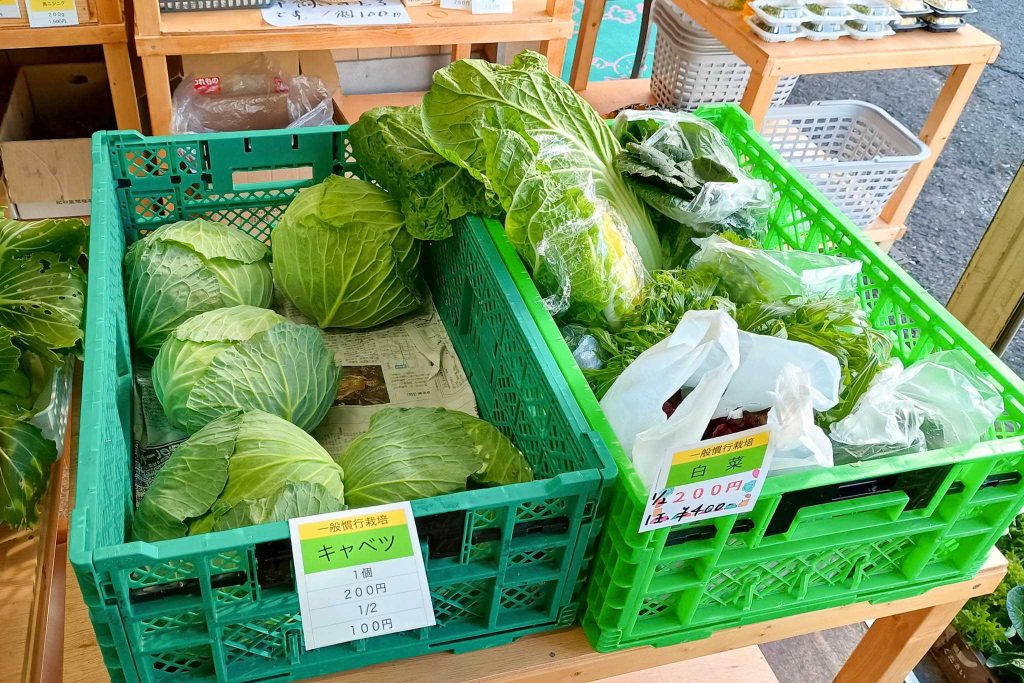 農薬や化成肥料を使わずに栽培しているんだそう。朝採れの新鮮なお野菜がたくさん並んでいました。