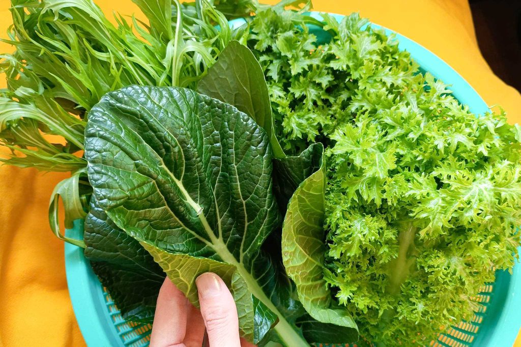 お店の方のご厚意で、サラダ水菜・ワサビ菜・小松菜をいただきました!小松菜の色がめっちゃ濃い。フレッシュでシャキシャキでした!ありがとうございました。