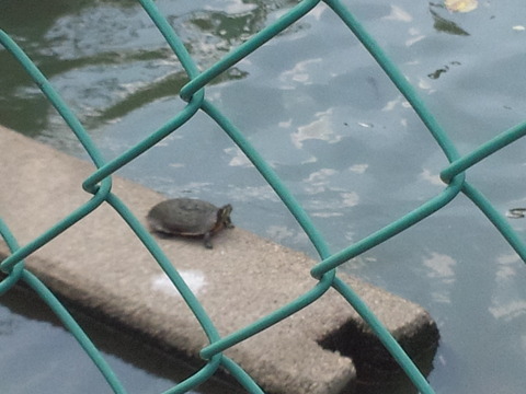 カメって、動きが遅い動物の代名詞的な物ですが、意外と警戒心が強いんでしょうかねー。