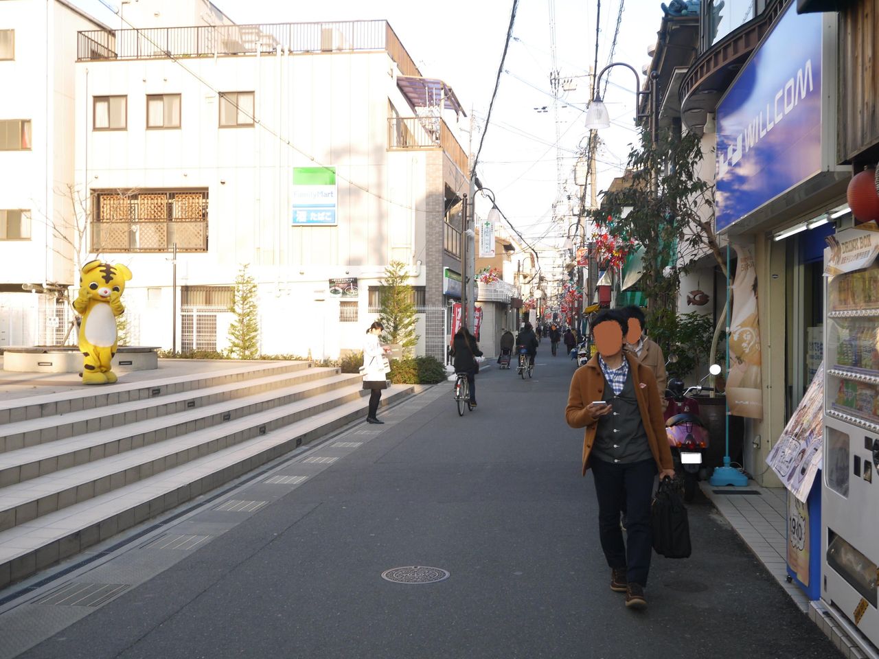 この商店街は元々人通りが多いうえにマスコットがいたりして、活気があっていいですね。